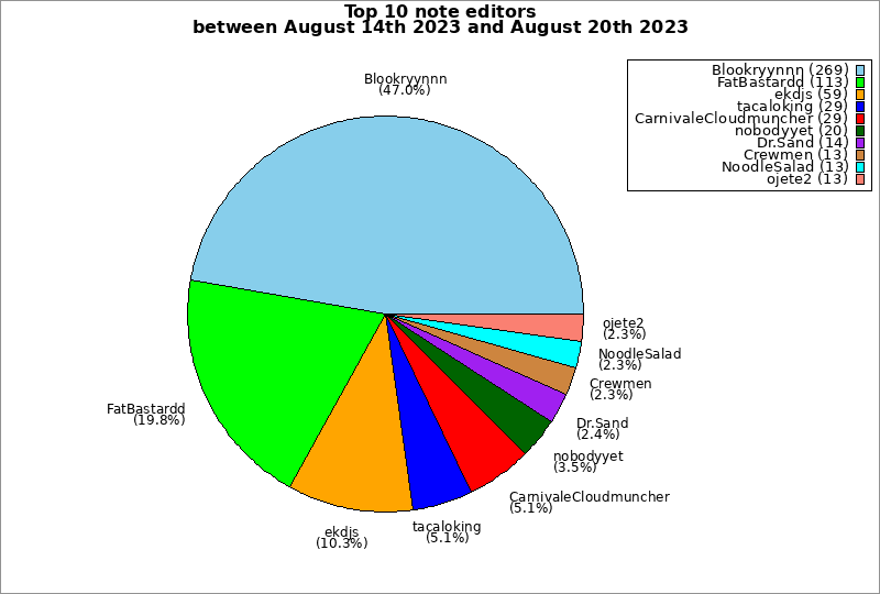 | Top 10 note editors between August 14th 2023 and August 20th 2023 | ||