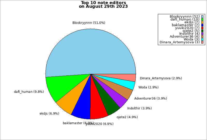 | Top 10 note editors on August 29th 2023 | ||