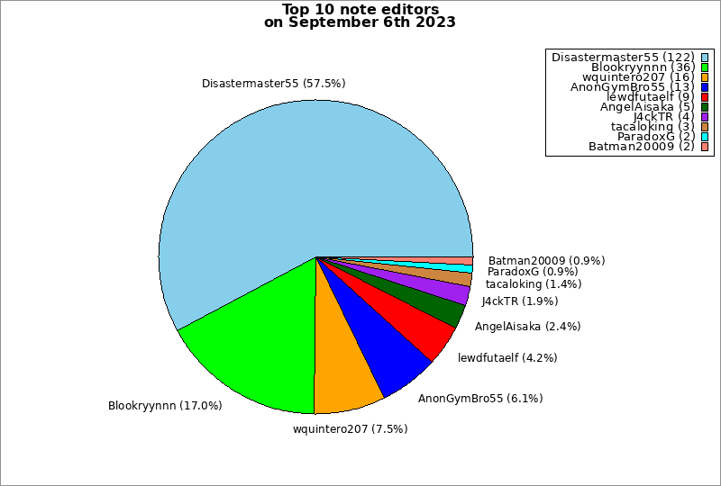 | Top 10 note editors on September 6th 2023 | ||