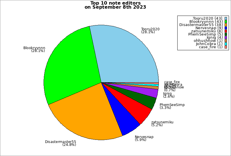 | Top 10 note editors on September 8th 2023 | ||