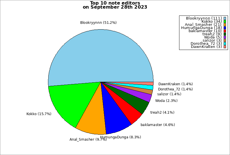 | Top 10 note editors on September 28th 2023 | ||