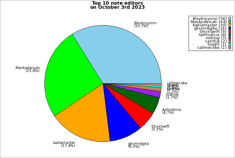 | Top 10 note editors on October 3rd 2023 | ||