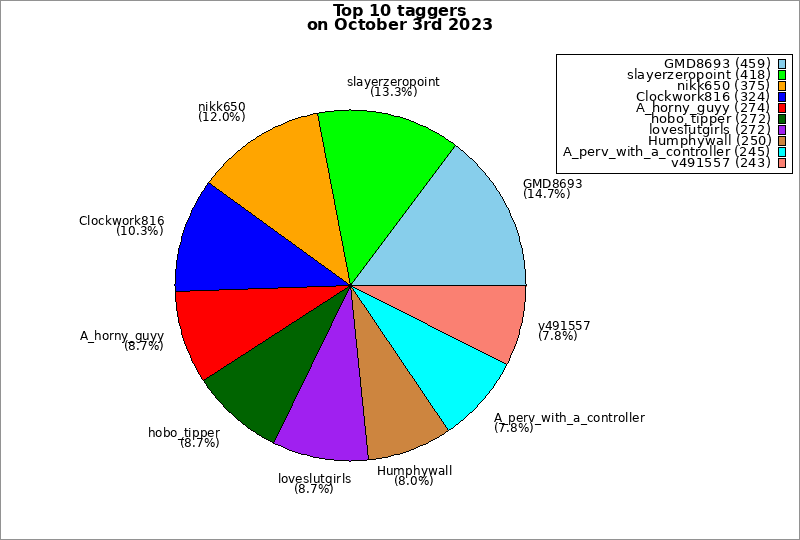 | Top 10 taggers on October 3rd 2023 | ||