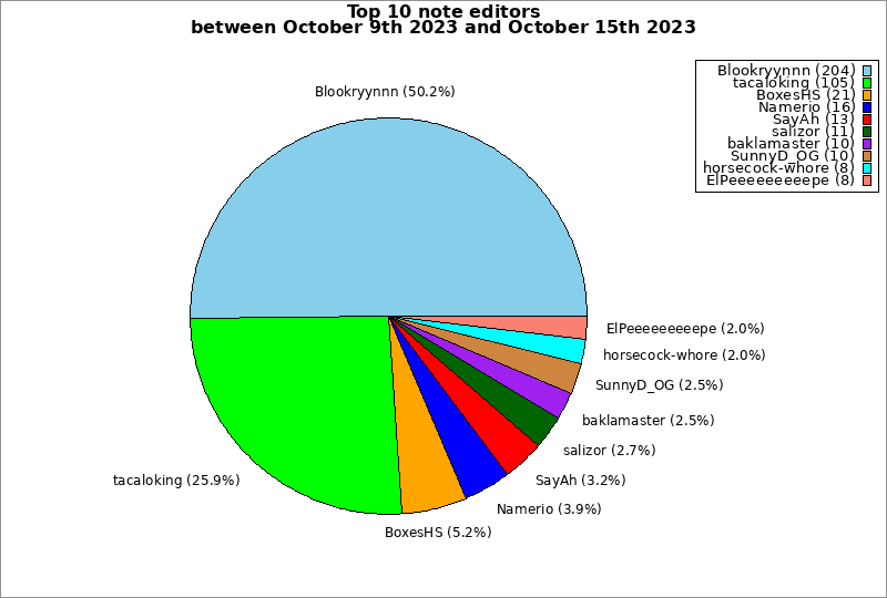 | Top 10 note editors between October 9th 2023 and October 15th 2023 | ||