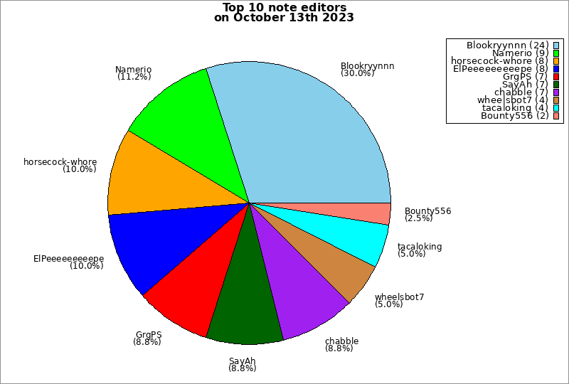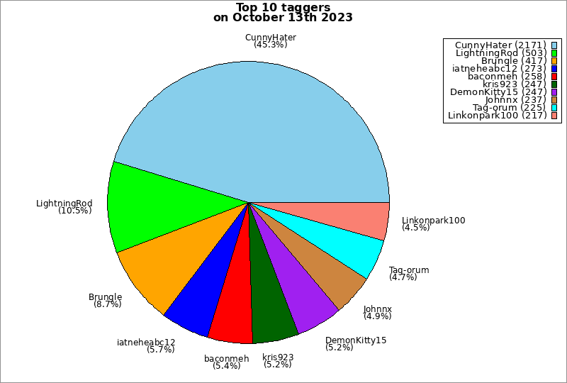 | Top 10 taggers on October 13th 2023 | ||