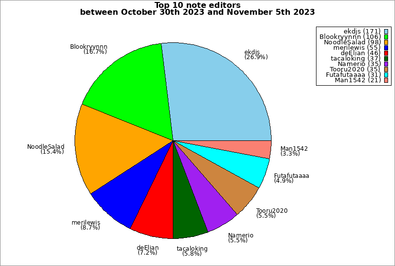 | Top 10 note editors between October 30th 2023 and November 5th 2023 | ||