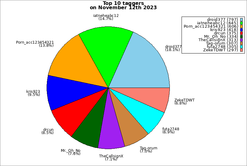 | Top 10 taggers on November 12th 2023 | ||