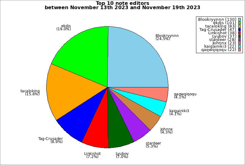 | Top 10 note editors between November 13th 2023 and November 19th 2023 | ||