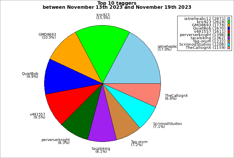 | Top 10 taggers between November 13th 2023 and November 19th 2023 | ||