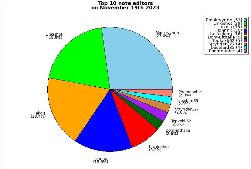 | Top 10 taggers on November 19th 2023 | ||