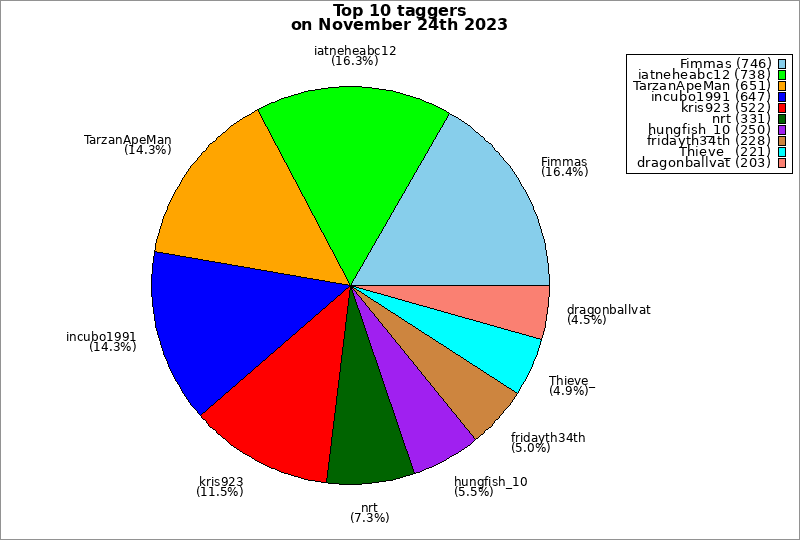 | Top 10 taggers on November 24th 2023 | ||