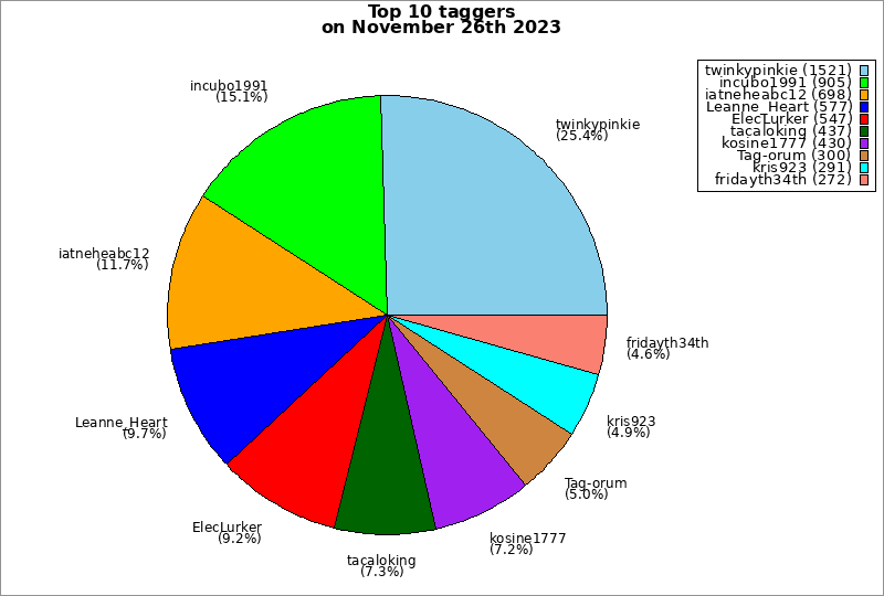 | Top 10 taggers on November 26th 2023 | ||