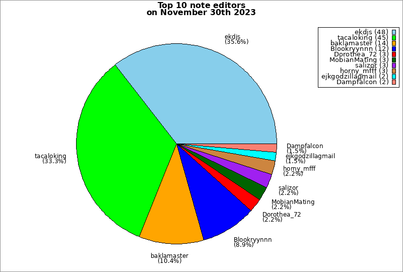 | Top 10 note editors on November 30th 2023 | ||