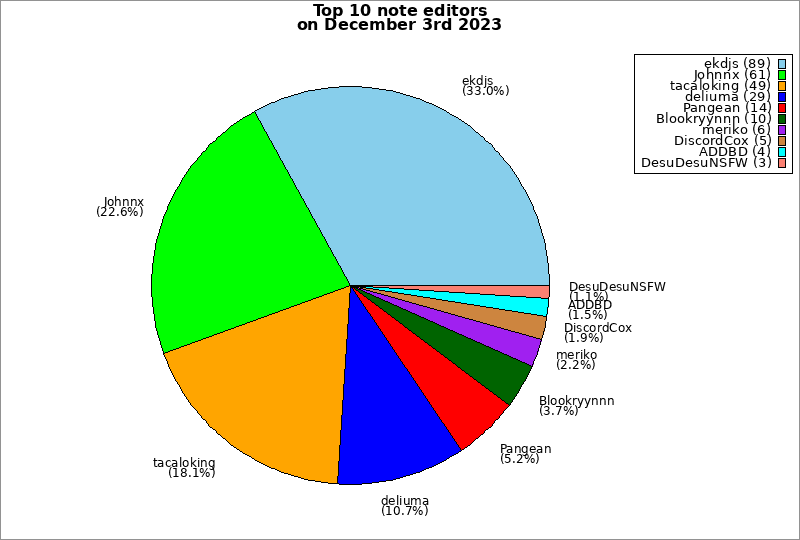 | Top 10 note editors on December 3rd 2023 | ||