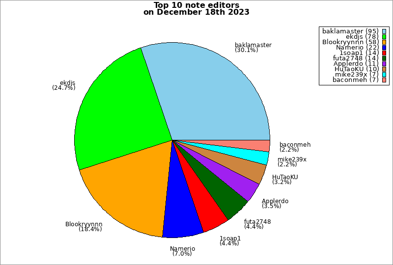 | Top 10 note editors on December 18th 2023 | ||