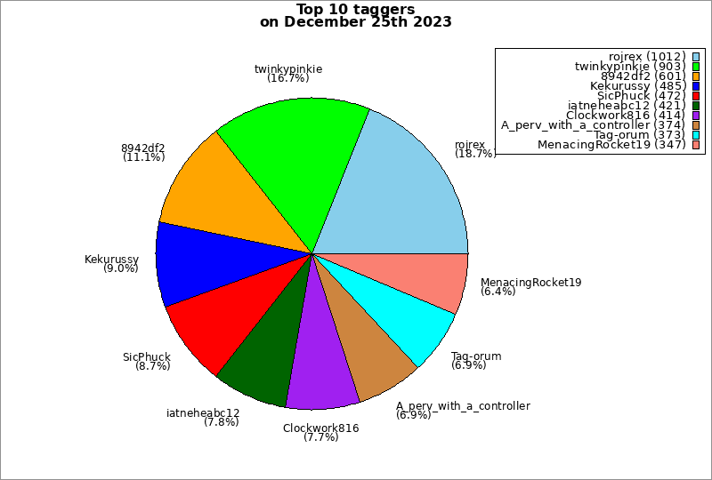 | Top 10 taggers on December 25th 2023 | ||