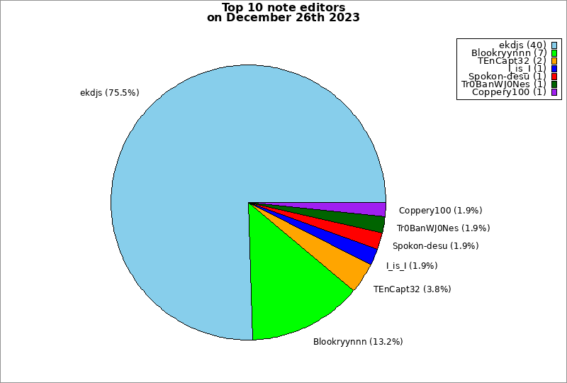 | Top 10 note editors on December 26th 2023 | ||