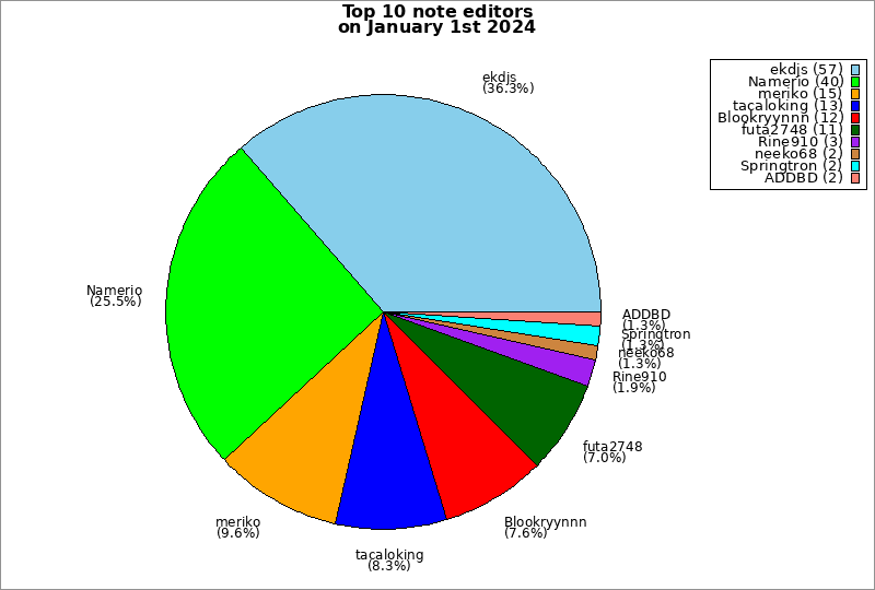 | Top 10 note editors on January 1st 2024 | ||