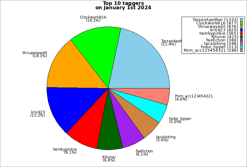 | Top 10 taggers on January 1st 2024 | ||