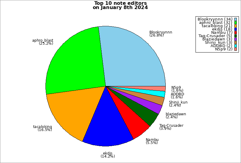 | Top 10 note editors on January 8th 2024 | ||
