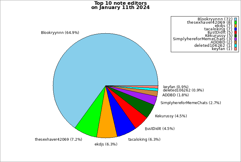 | Top 10 note editors on January 11th 2024 | ||