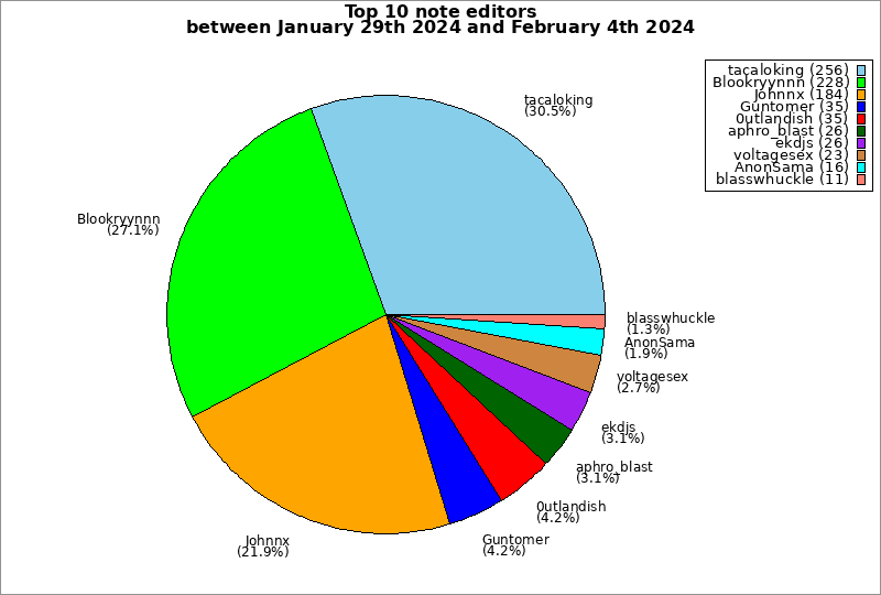 | Top 10 note editors between January 29th 2024 and February 4th 2024 | ||