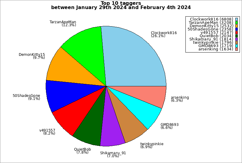 | Top 10 taggers between January 29th 2024 and February 4th 2024 | ||