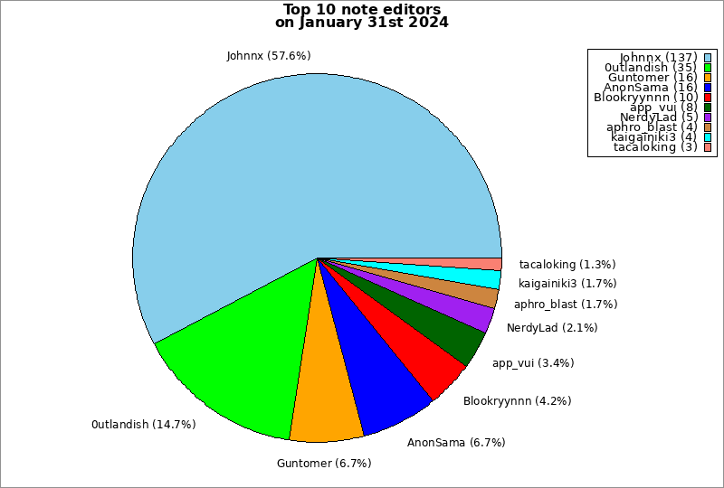 | Top 10 note editors on January 31st 2024 | ||
