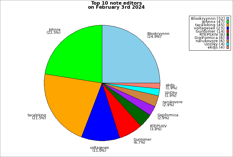 | Top 10 note editors on February 3rd 2024 | ||