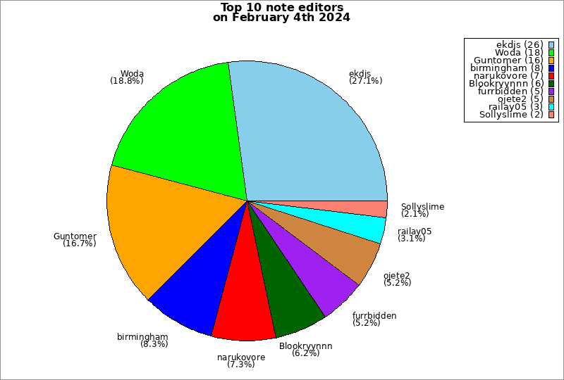 | Top 10 note editors on February 4th 2024 | ||