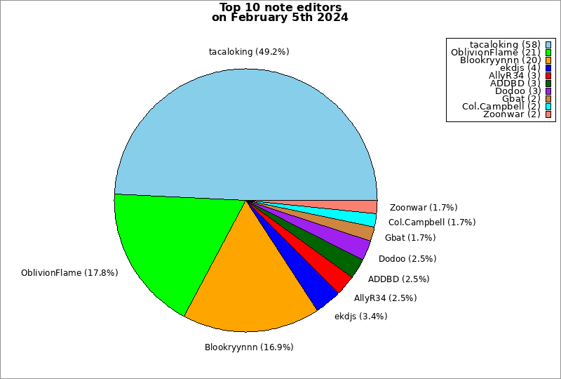 | Top 10 note editors on February 5th 2024 | ||