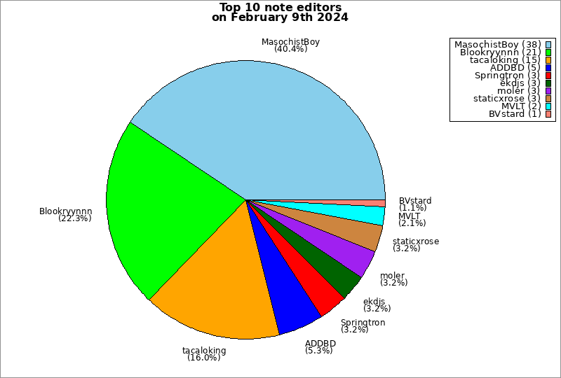 | Top 10 note editors on February 9th 2024 | ||