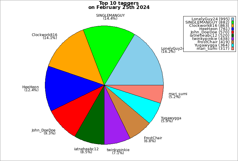 | Top 10 taggers on February 25th 2024 | ||