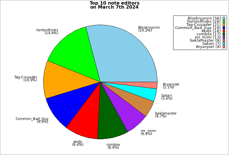 | Top 10 note editors on March 7th 2024 | ||