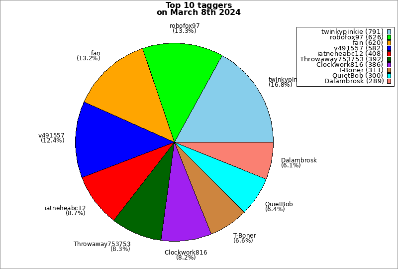 | Top 10 taggers on March 8th 2024 | ||