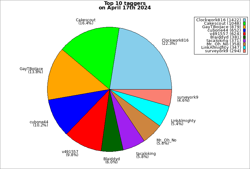 | Top 10 taggers on April 17th 2024 | ||