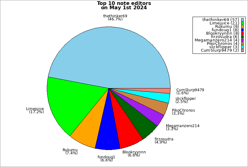 | Top 10 note editors on May 1st 2024 | ||