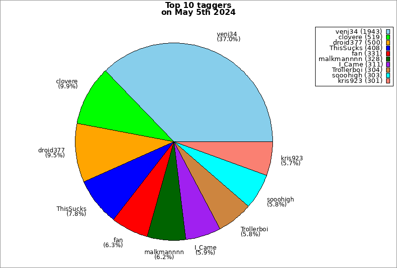 | Top 10 taggers on May 5th 2024 | ||