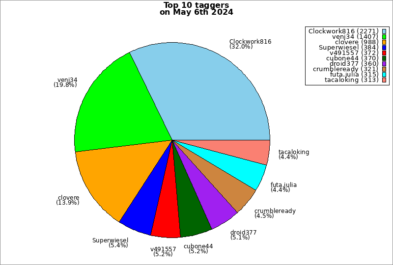 | Top 10 taggers on May 6th 2024 | ||