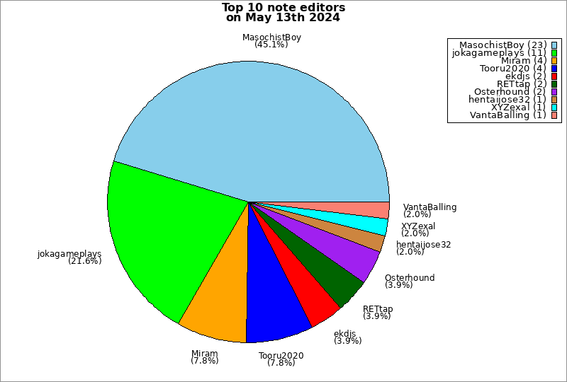 | Top 10 note editors on May 13th 2024 | ||