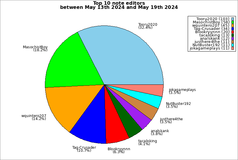 | Top 10 note editors between May 13th 2024 and May 19th 2024 | ||