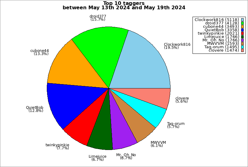 | Top 10 taggers between May 13th 2024 and May 19th 2024 | ||