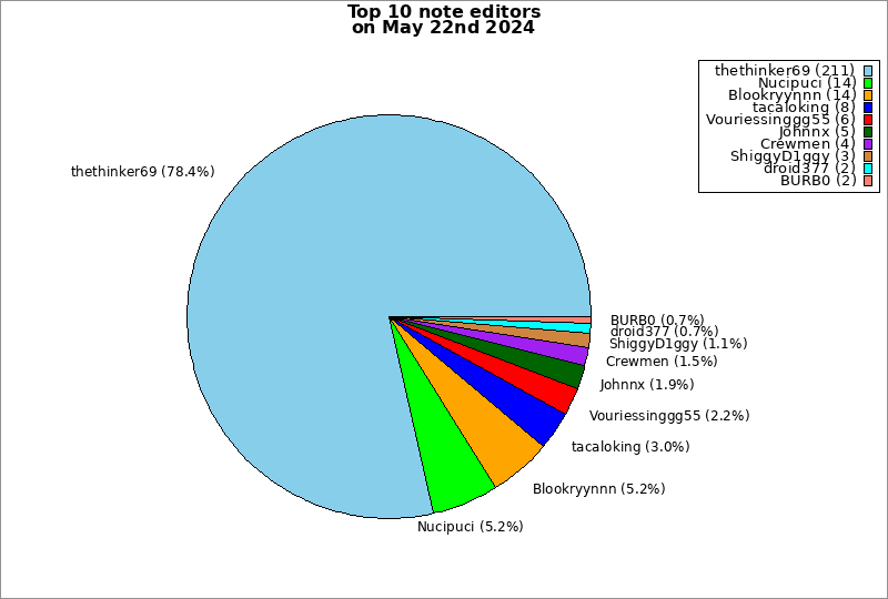 | Top 10 note editors on May 22nd 2024 | ||