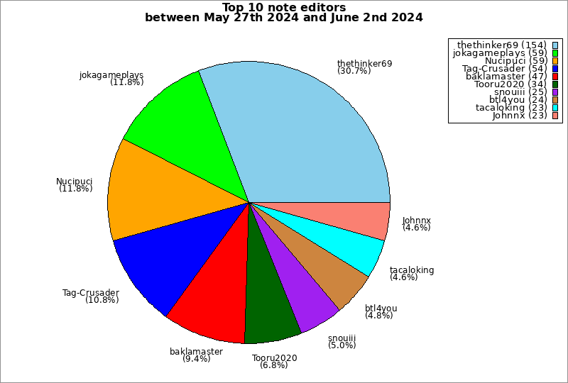 | Top 10 note editors between May 27th 2024 and June 2nd 2024 | ||