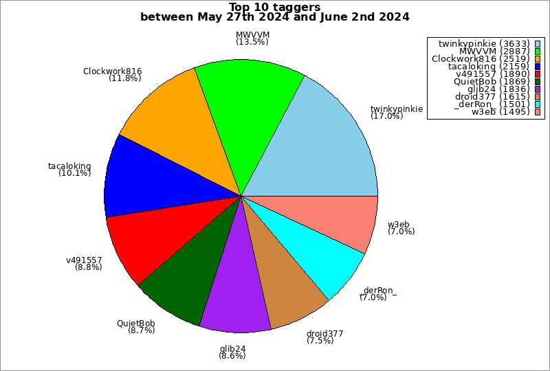 | Top 10 taggers between May 27th 2024 and June 2nd 2024 | ||