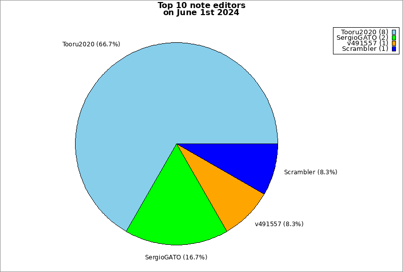 | Top 10 note editors on June 1st 2024 | ||