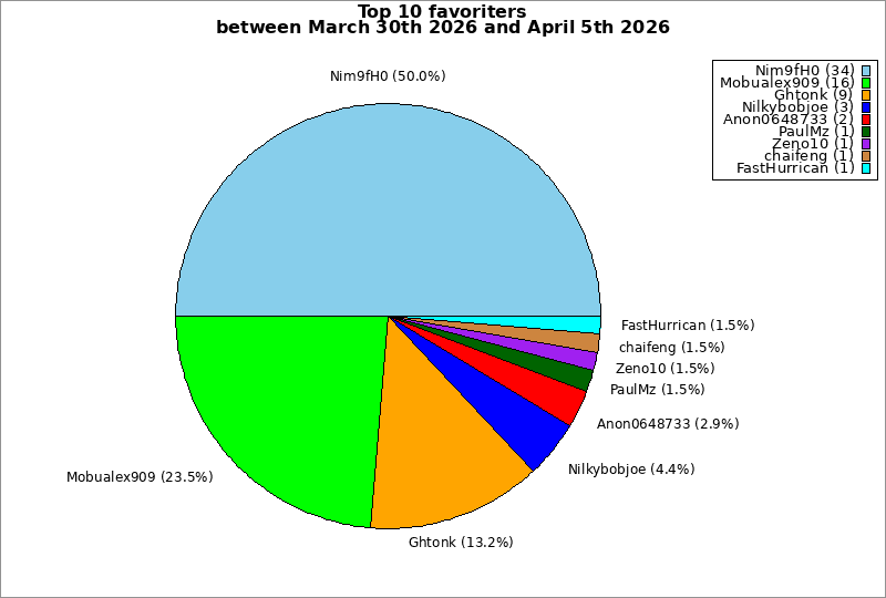 | Top 10 favoriters between March 30th 2026 and April 5th 2026 | ||