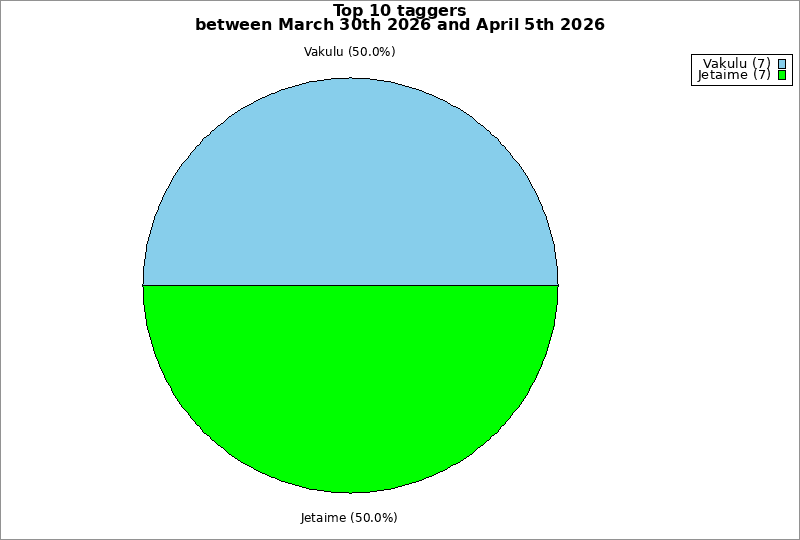 | Top 10 taggers between March 30th 2026 and April 5th 2026 | ||