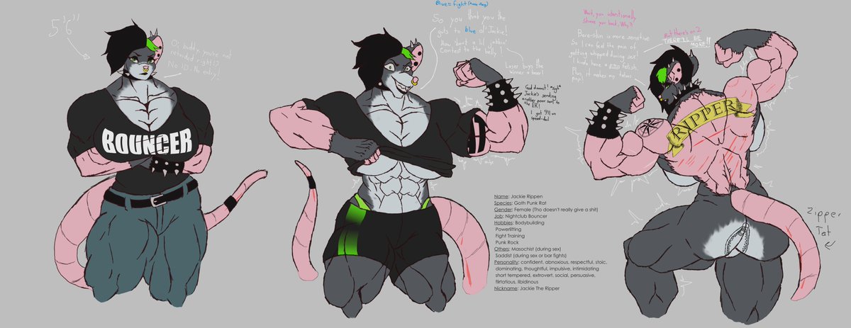 abs alternative alternative_fashion anthro ass back biceps black body breasts fashion female feral flexing fur grey hair helluva.w.wolf invalid_tag jackie_(disambiguation) jackie_rippen mammal mouse murid murine muscular piercing punk rippen rodent scar shaved_pussy solo spikes tattoo text